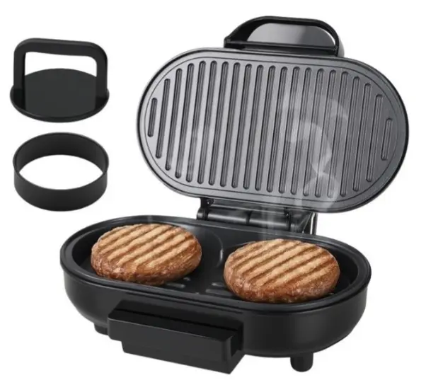 Su diseño compacto y ligero hace que la guardes fácilmente en cualquier rincón. Además, no solo cocina hamburguesas, sino también huevos fritos y más, haciendo que sea una máquina versátil para el día a día.