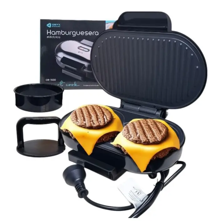 Convertí tu cocina en un espacio práctico con la Hamburguesera Eléctrica Orix OR-1500. Con capacidad para 20 hamburguesas por hora y un tamaño uniforme de 10 cm, es ideal para preparar comidas rápidas y sabrosas en casa.