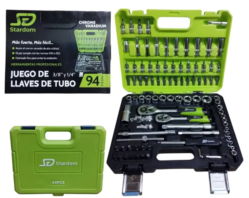El juego de herramientas Stardom de 94 piezas es la solución ideal para quienes buscan calidad y versatilidad en su caja de herramientas. Fabricado en cromo vanadio, este conjunto ofrece una durabilidad excepcional y un rendimiento superior, perfecto para profesionales y aficionados al bricolaje. Cada utensilio está diseñado para facilitar el trabajo en diferentes proyectos, desde reparaciones sencillas hasta tareas más complejas.