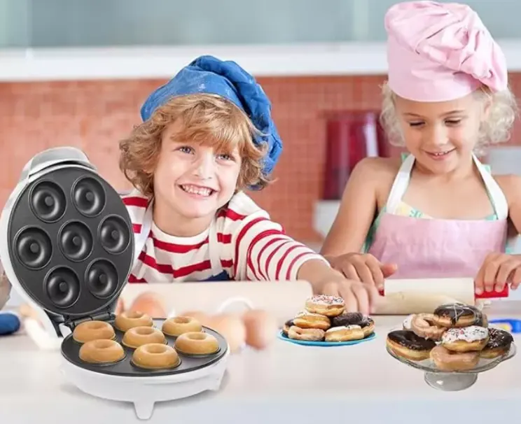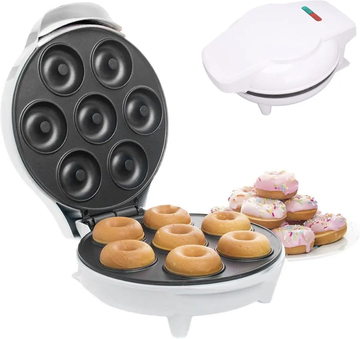 Equipado con placas calefactoras paralelas para garantizar que las donas se calienten uniformemente durante el horneado.Revestimiento antiadherente: la máquina para hacer donas eléctrica adopta un revestimiento antiadherente negro de calidad alimentaria, que es fácil de liberar y de limpiar, lo que ahorra tiempo y esfuerzo. Este aparato de cocina facilita y agiliza la limpieza.